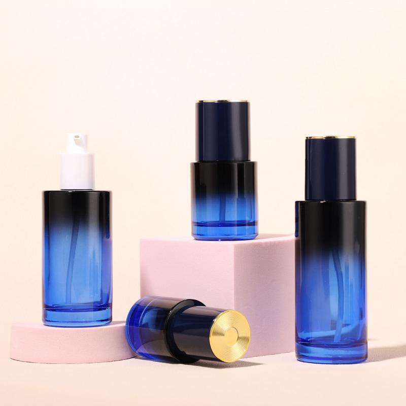 جسم زجاجة ناعم غير لامع بتصميم بسيط متعدد الطبقات ومستقيم، نوفر 4 أحجام لزجاجات اللوشن (30 مل، 50 مل، 100 مل، 120 مل) مع ثلاثة برطمانات كريم متطابقة بحجم 20 غ، 30 غ، 50 غ، عبوة كاملة لسلسلة العناية بالبشرة.